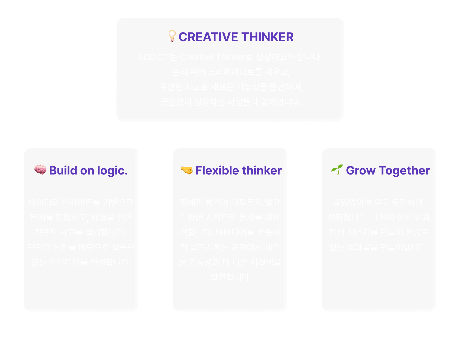ADDICT는 프로젝트를 진행하면서 Creative Thinker로 성장하고자 합니다.